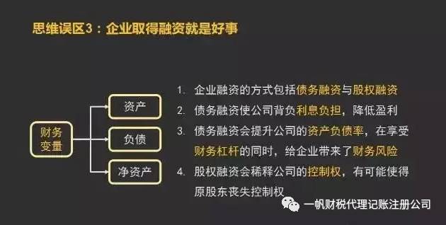 假设我们公司未来的目标是要大幅度提高公司的收入,于是公司就去为这个东西做准备,要去购置相应的资产。资产多了就会引起债务的增加。债务增加,就会有费用,可能会有一些借款费用,就会影响到利润。*后可能会使得公司资产负债率上升,同时由于债务成本特别高,公司的利润不一定会同比的上升,所以我们任何一个业务,都会影响到多个财务变量。一定要用整体性的思考方式,要用联系性的思维方式,来解决公司的业务和财务的问题,千万不可孤立的去看待任何一个变量。
